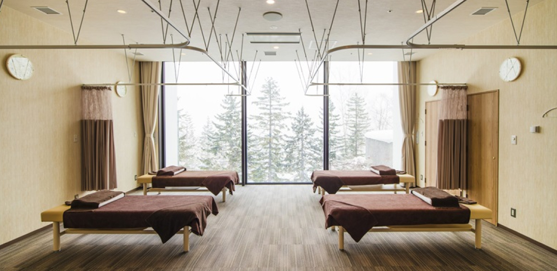 施術場所は、ノースウイング6階「ルスツ温泉・ことぶきの湯」隣と、ウェスティン ルスツリゾート1階エレベーターホール奥の2か所。当日の空きがあればご利用可能で、14:00〜16:00頃は比較的混雑しにくい時間帯です。ノースウイングが満室の場合でも、ウェスティン ルスツリゾート側に空きがあることも。モノレールをご利用のうえ、ぜひ施術にお越しください。