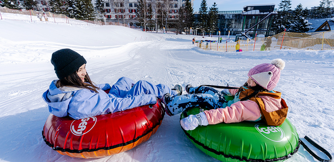 スノーエスカレーターを完備しているため、チュービングをエンドレスに楽しめます。降り場にはスタッフが常駐しており、お子様でも安心してご利用いただけます。また、スロープエリアとフラットエリアが分かれているため、滑走者と雪あそびを楽しむ方が交差する心配もありません。
