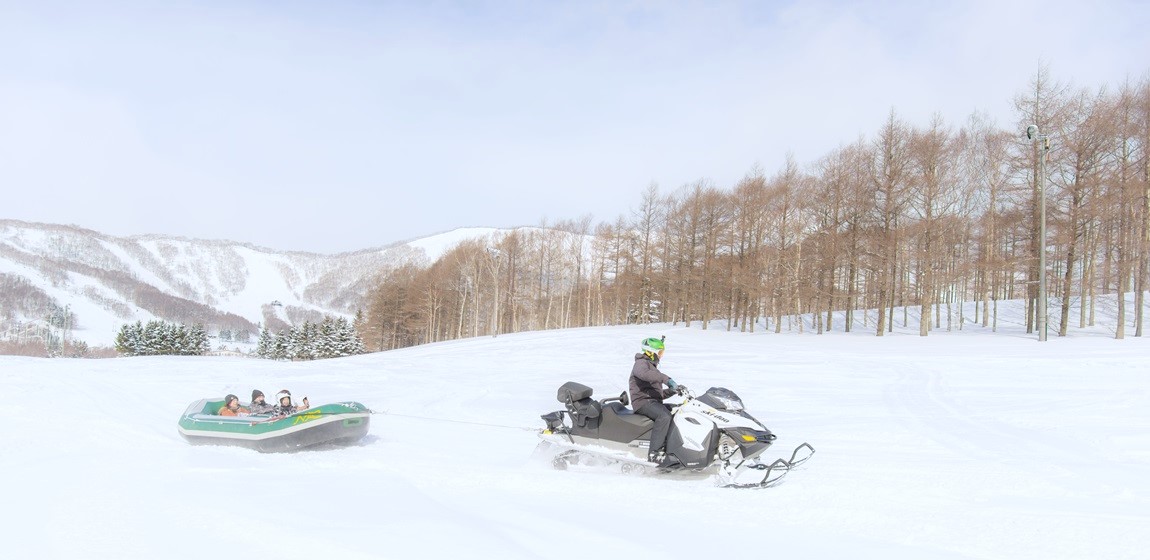 ゲレンデだけでなく、ウィンターアクティビティの充実もルスツの魅力のひとつ。春の雪原を疾走するスノーモービルやスノーラフティングは、白樺林や広大な雪原を巡るプライベートツアー形式です。途中で写真や動画の撮影も楽しめるので、思い出づくりにもぴったり。ガイドがしっかりサポートするため、初心者の方でも安心してご参加いただけます。