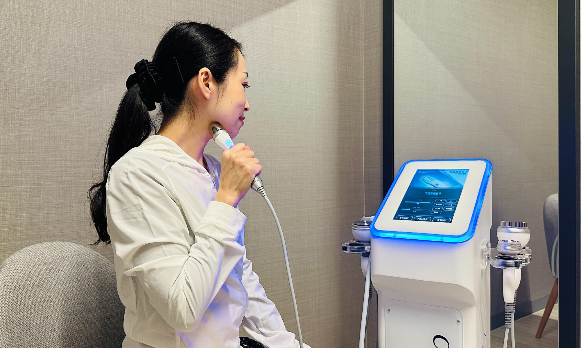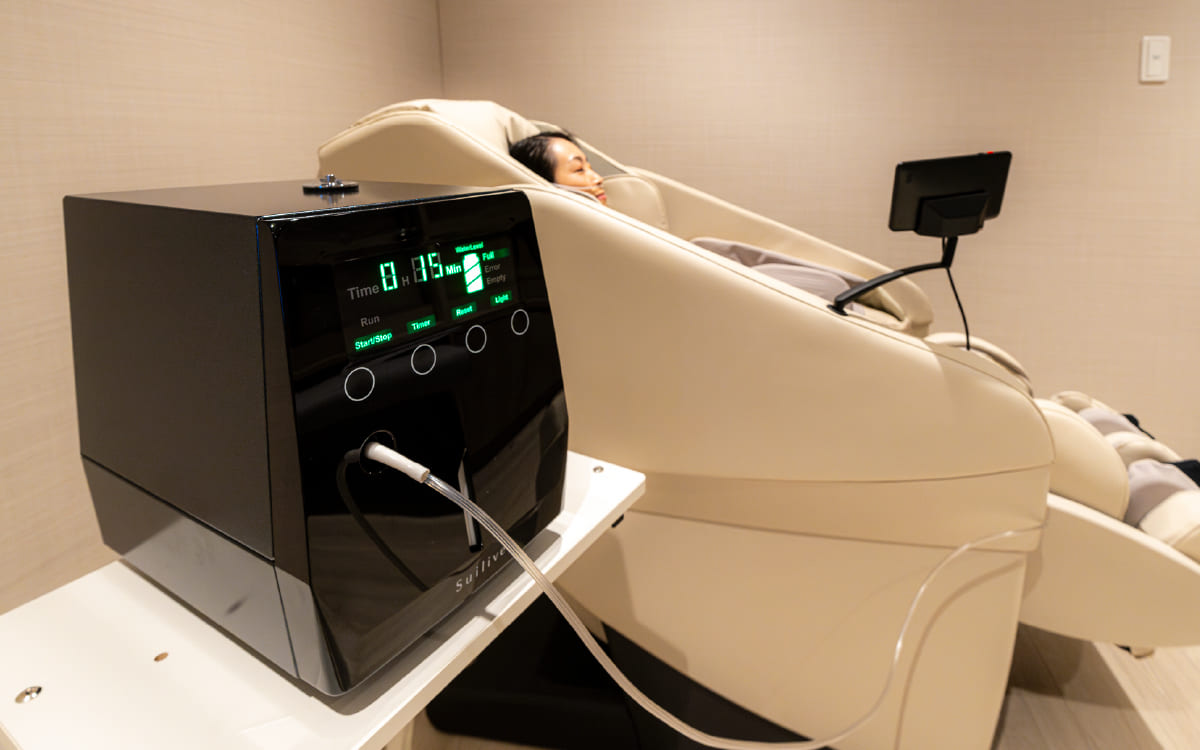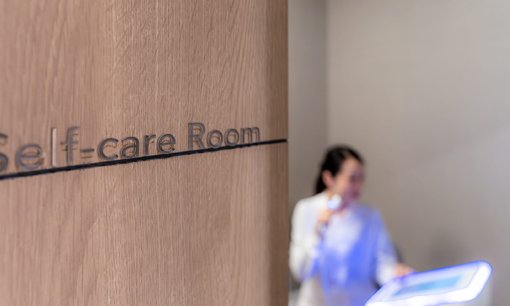 A fully equipped training gym. It features a power rack, dumbbells, treadmills, exercise bikes, and a variety of other workout machines. With its open ambiance surrounded by mirrors and glass windows, the gym allows you to focus on your form while exercising. Designed for users ranging from beginners to advanced, the gym supports training tailored to individual purposes.
