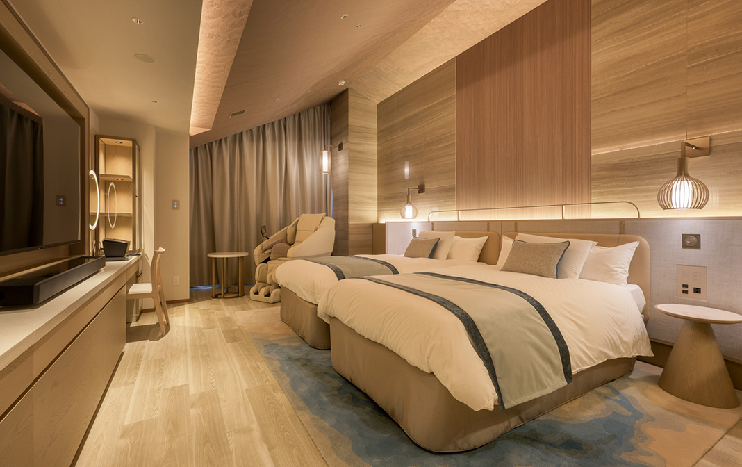 Bath (Tub) / Shower room (no bathtub) / Toilet (With warm-water Bidet) / Bed / Refrigerator / Ice maker / Mini bar (complimentary) / Phone / TV / Safe / Electric Kettle / Hair Dryer / Hair iron-straightener / Air Purifier-Humidifier / USB Outlet / Wireless LAN (Wi-Fi) / Weight Scale / Bluetooth Speaker / Hangers / Cloth Brush / Fireplace / Set of tableware / Microwave oven / Wine cellar / Sauna / Water bath / Oxygen capsule / Hydrogen machine / Esthetic machine / Facial therapy machine / Massage chair / Reclining chair