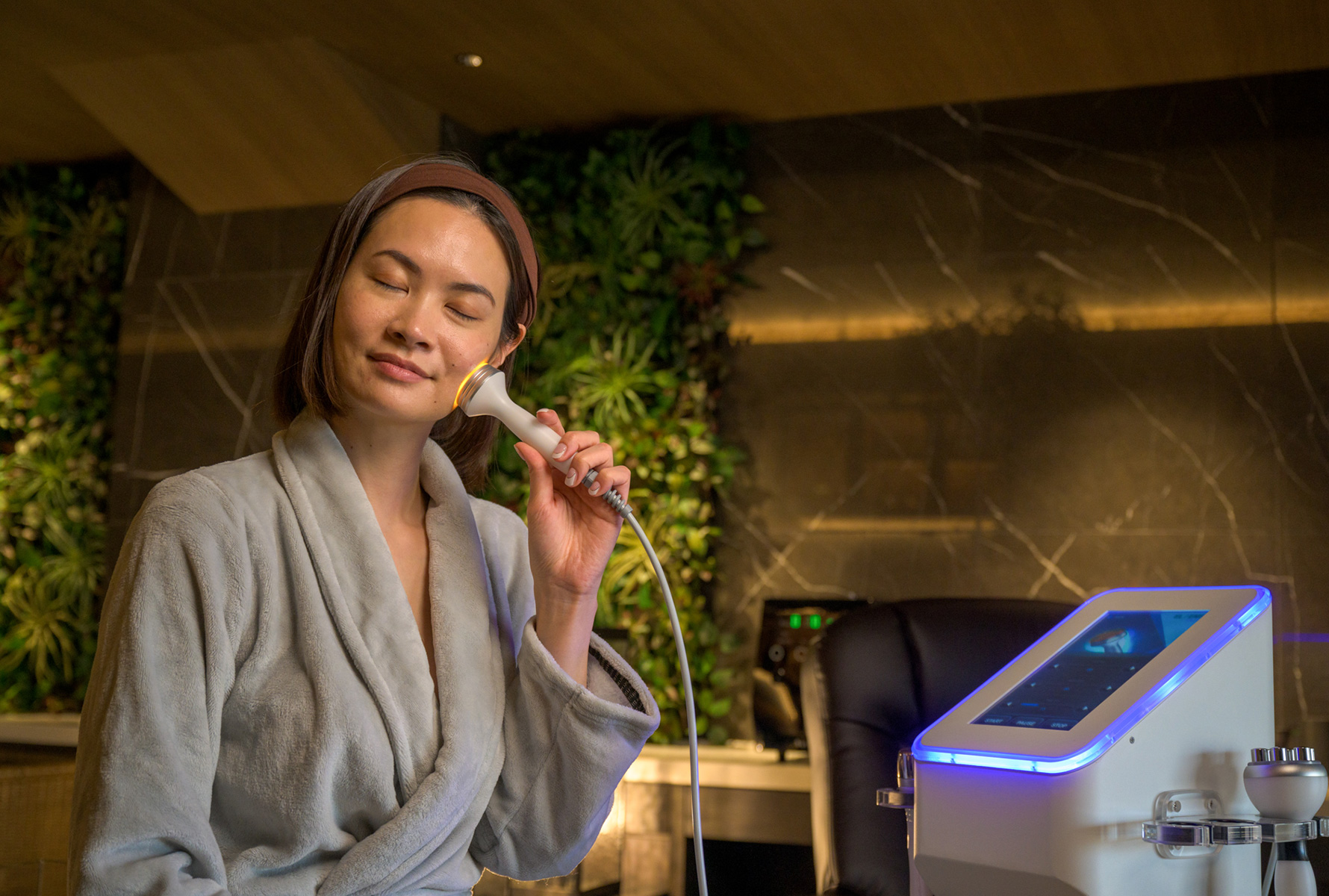 プロユースのエステマシン「セルドライブプロ」をお部屋にご用意。この1台でビューティーサロンと同等のフェイストリートメントやボディトリートメントが叶います。お好きな時にいつでもセルフエステをどうぞ。