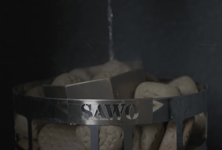 窓越しに四季を眺められるドライサウナ。木目の座面は上・中・下の3ステップあり、視点を変えて腰を据えられます。壁に北海道上ノ国町産の天然鉱石、遠赤外線ブラックシリカを使用。セルフロウリュも気ままにお楽しみください。