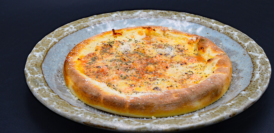分厚い生地が特徴の、かかしオリジナルピザ。生地全体にチーズが挟み、どこを食べてもチーズの旨味を堪能できます。トマトソースとの相性も抜群。