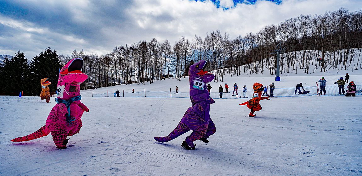 3月は寒すぎず、暑すぎず、まさに絶好のティラノサウルスシーズン。スキーヤー・スノーボーダーの視線を集めて、みんなで盛り上がりましょう。