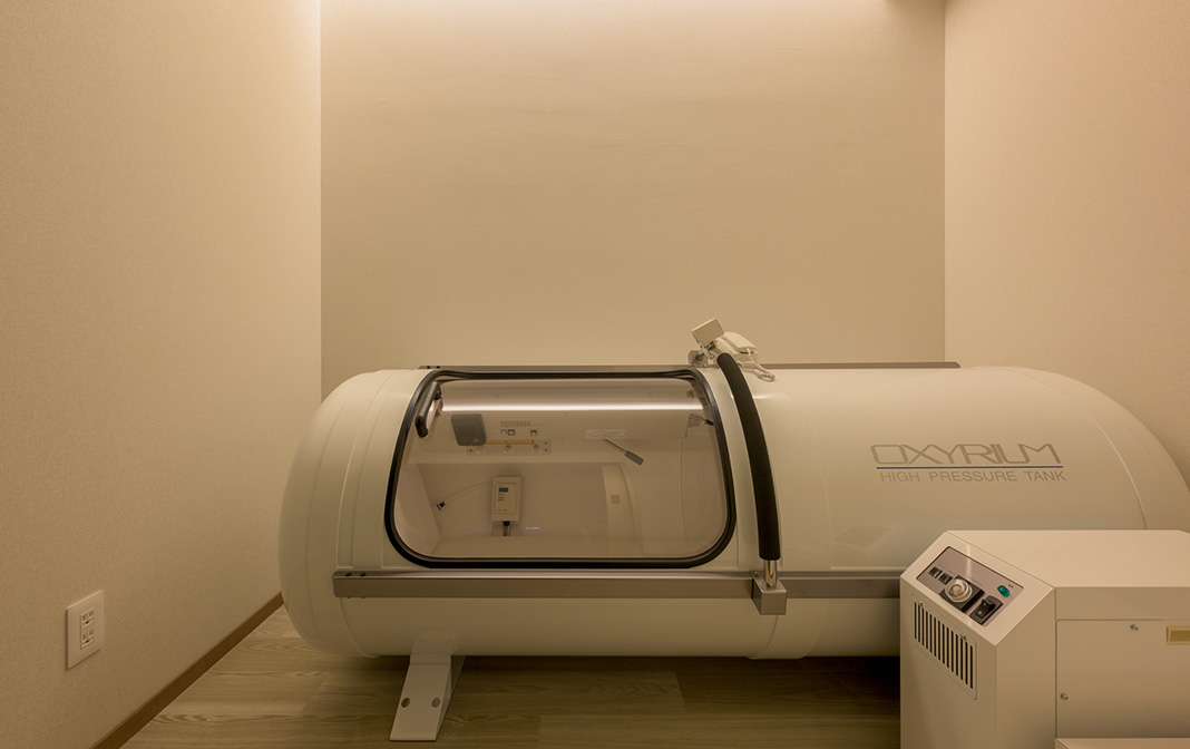 ベッドルームの一角には、OXYRIUMの酸素カプセルを設置した小部屋があります。お好きな時にお好みの気圧を選び、クーラーをかけつつ酸素を思う存分取り込めます。究極のリラックスタイムをお過ごしください。