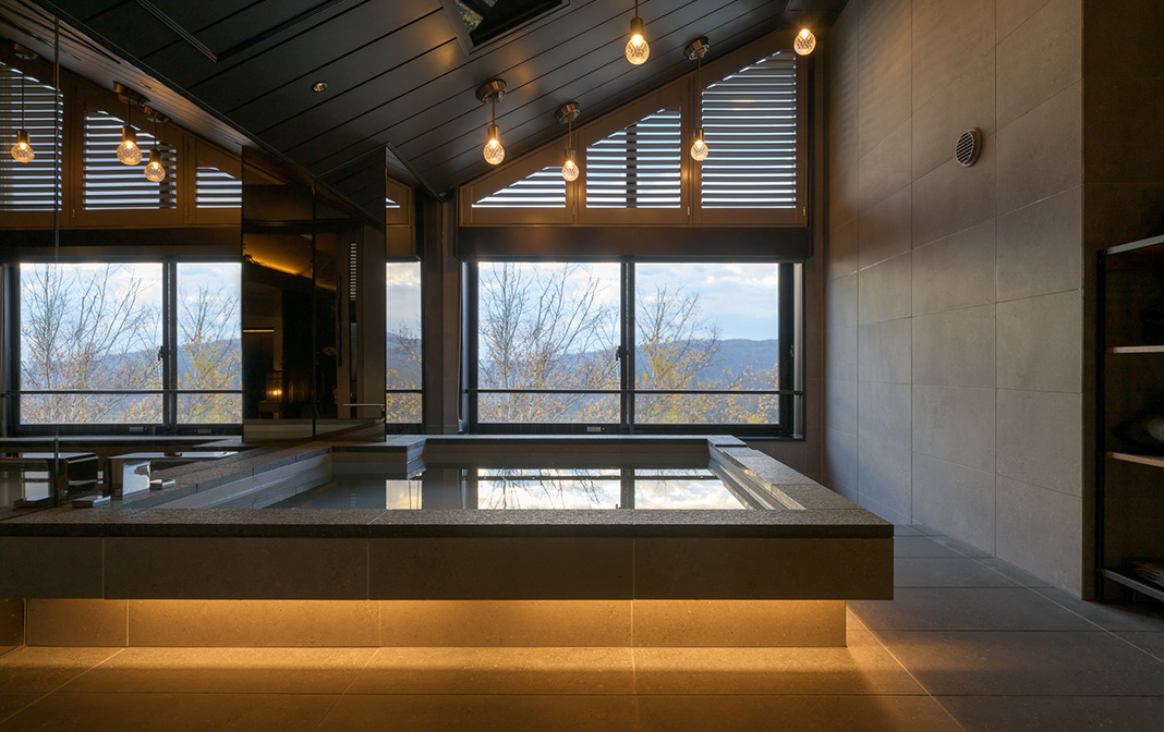 心と身体を解き放つプライベート・ホットバス。バスタブに映し出される浜辺のさざ波や天空の星空など、プロジェクションマッピングで癒しのひと時を演出します。ブラインドを開ければ露天風呂気分で窓越しにルスツの四季を望めます。