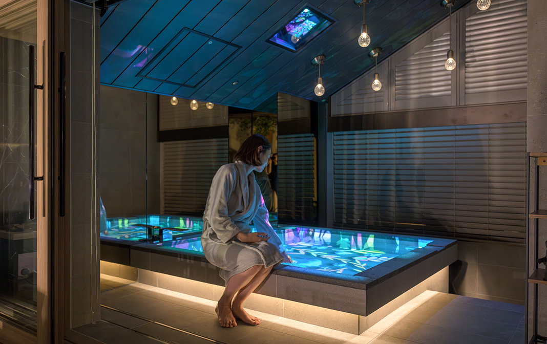 ウェルネスをこだわり尽くした最上級の健やかさと美しさと安らぎを。全2室のみご用意した、ハイグレードなスイートルームです。プライベートのドライサウナや酸素カプセル、エステマシンなど、心と身体を潤すウェルネスなしつらえの数々が備わる、落ち着いた大人のためにご用意した居城。バスタイムを華やぐプロジェクションマッピングをはじめ、光や音、香り、暖炉の温もりなど、五感を研ぎ澄ます演出もお好みのシーンで奏でられます。