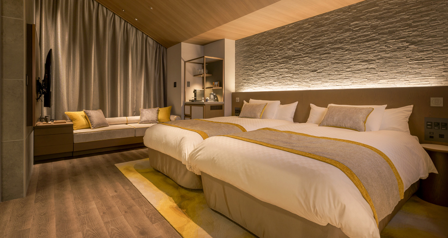 旅の疲れを癒し、慣れない土地での心地よい眠りをお約束。ベッドには、低反発と高反発をちょうどよく組み合わせ、身体の圧力を心地よく分け隔てられるコアラマットレスを敷いています。爽快な夜明けをお迎えくださいませ。
